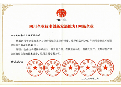 2020年四川省企業技術創新發展能力100強企業