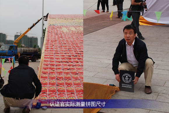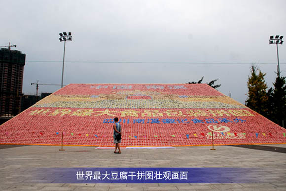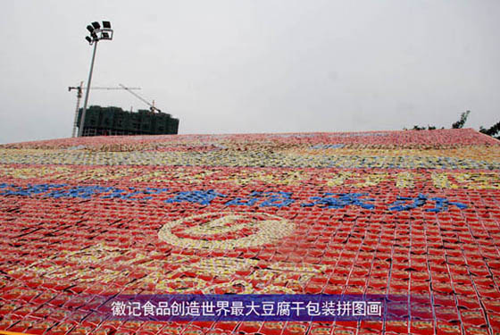 四川南溪国产亚洲熟妇在线视频(jì)食品通(tōng)過使用顏(yán)色多樣的成品豆腐幹(含包裝),拚成了(le)一幅665.03平方米,展示南溪古城風貌的“世界最大豆腐幹拚圖”。這幅拚圖由(yóu)2.8萬(wàn)袋(重4噸)顏色多樣的成品豆腐幹(含包裝)製成,其圖案為南溪古城風貌。造型精美大方,得到了專家和市民的一致好評並成功申報吉尼斯世界紀錄(lù)。根(gēn)據吉尼斯認(rèn)證官陳(chén)東先生的實地(dì)測(cè)量,這幅(fú)拚圖的麵積為665.03平方米,其挑(tiāo)戰目標是2009年在香港創(chuàng)造的639.63平方米的拚圖。