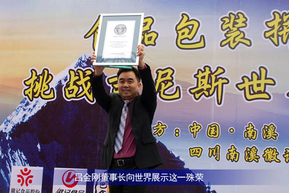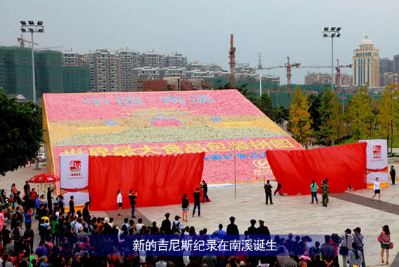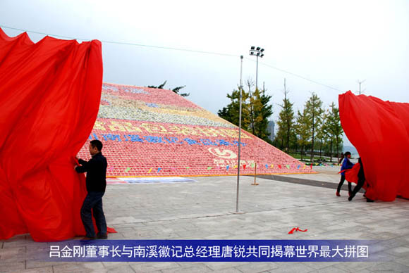 9月26日下(xià)午,在南溪區濱江新城仙源(yuán)廣場共同見證由南溪區食品工業協會主辦、四川徽(huī)記食品(pǐn)股份有限公司承辦、四川美術學院設計、根據豆腐幹外包裝拚成(chéng)本土特色(sè)的南溪風光畫“文明門”為 “世界最大豆腐幹(gàn)拚圖”吉尼斯(sī)世界(jiè)紀錄的申報。