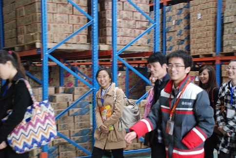 上午十點,同學們在(zài)解說人員的帶領下參觀了整個廠區,對(duì)徽(huī)記食品的(de)生產、倉儲、行政、營銷等方麵有了更(gèng)深了解。參觀途中,同學們興致很高,與工作人員就“6S”管理、車間流水線生產、叉車使用、產品檢驗等多(duō)方麵話題進行了(le)交流。
