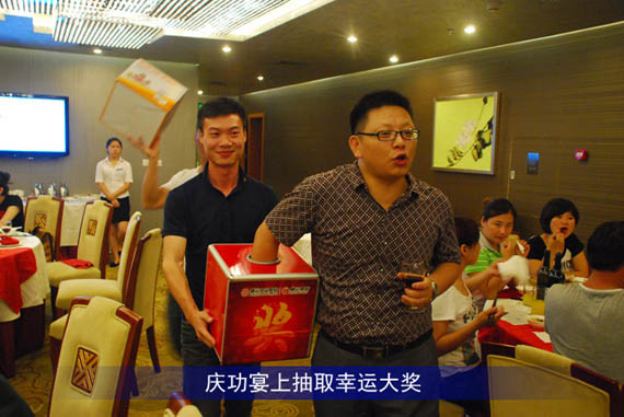 一天的有氧運動讓大家些許(xǔ)疲憊(bèi),而晚上準點的慶功晚宴卻讓大家能量(liàng)回升。意氣風發的卓越(yuè)經理人們,共同舉起手中的酒杯(bēi),共同祝福,相互激勵在(zài)工作崗位上不斷超越。而其中(zhōng)穿插的抽獎環(huán)節(jiē),也讓現場(chǎng)的(de)氣氛一(yī)次次地被升華(huá),一份(fèn)份神秘獎品讓大家驚喜不斷。而慶功宴上高潮那一刻,則是全(quán)場燈(dēng)光(guāng)熄滅,圓形燭光緩緩進入慶功晚宴現場,八月的壽星同仁圍繞被點亮的(de)生日蛋糕共同許願,全體卓越經(jīng)理人共同拍手唱起生日祝(zhù)福歌,此刻此(cǐ)景,溫(wēn)馨有愛充滿了整個現場。