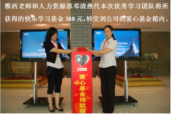 而在輕鬆愉快的學習氛(fēn)圍中又充滿著激烈競爭,国产亚洲熟妇在线视频人那種不服輸的精神體現的(de)淋漓盡(jìn)致(zhì),最(zuì)後由川北城市經理張超帶(dài)領的學習(xí)小組,積極的搶答問題,在小組成員的共同努力下取得了優異的成績,摘取(qǔ)了“優秀學習團隊”的桂冠,獲得了由每個參訓學員共同捐出的“快樂(lè)學習基金(jīn)”。而這(zhè)個優(yōu)秀的學習團(tuán)隊在培訓頒獎結束後做出了讓我們所有人感(gǎn)動值得(dé)學(xué)習的一(yī)件事情:把他們辛苦得到的388元“快樂學習基金”捐給公司的“愛心基金”,獻(xiàn)出他們小組每位學員的愛心。